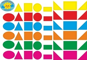Geometrinių figūrų lipdukus galima naudoti kaip mozaiką, spalvinti paprastus paveiksliukus.