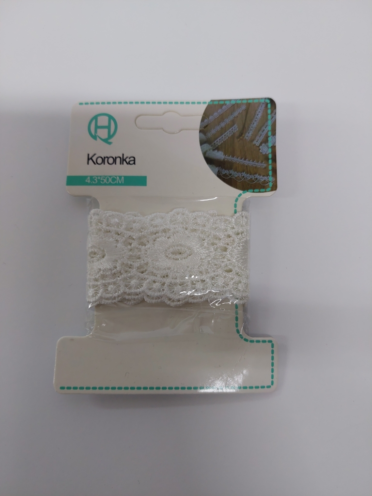 Nėrinių juostelė 4.3cm pločio 50cm ilgio baltos spalvos