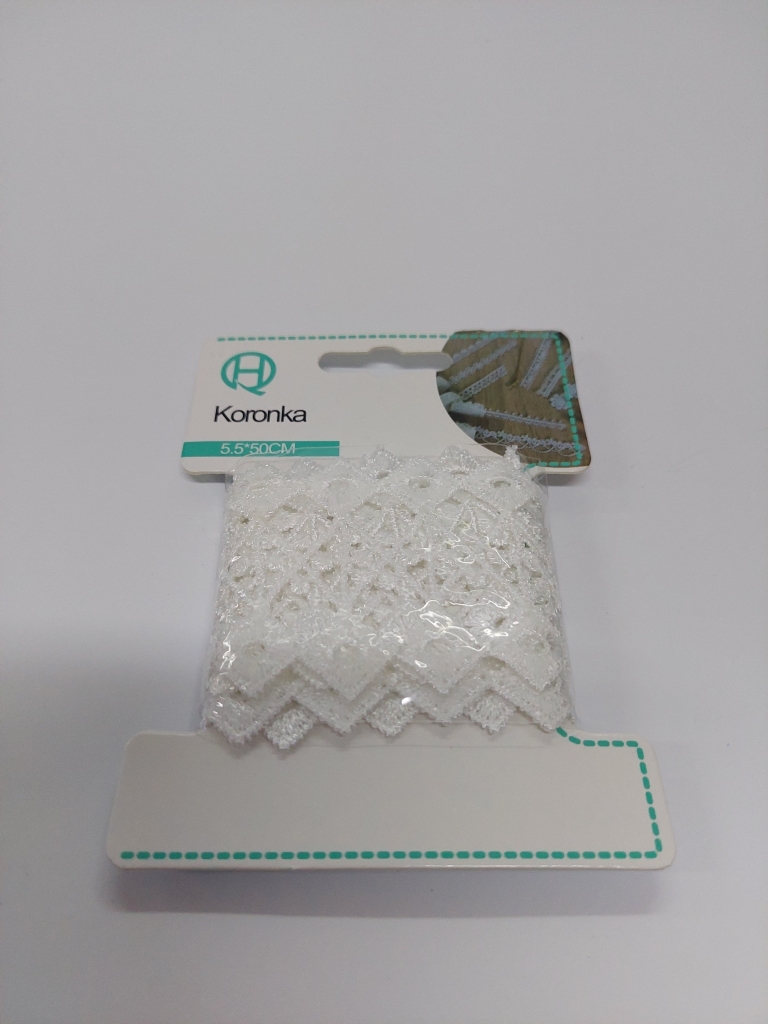 Nėrinių juostelė 5.5cm pločio 50cm ilgio baltos spalvos
