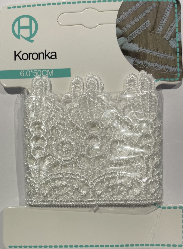 Nėrinių juostelė 6.0cm.,50cm. baltos sp.