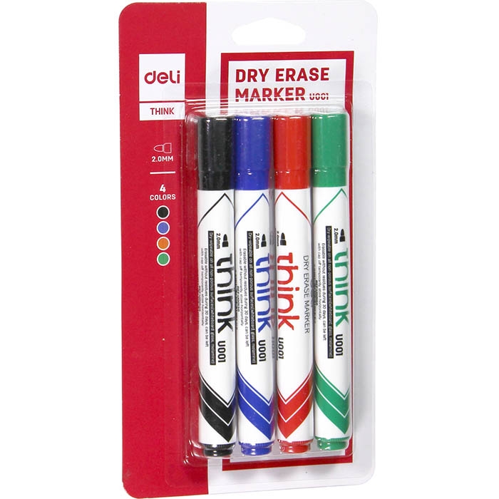 Nutrinamų žymeklių Think rinkinys 4 spalvos apvaliu galu Deli