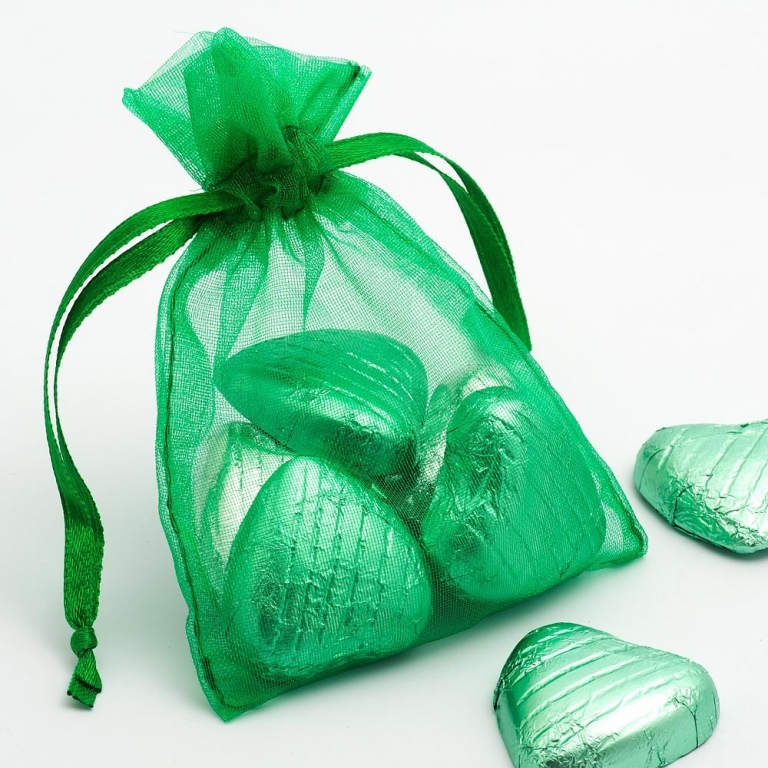 Organzos maišelis bižuterijai 9x7cm žalias