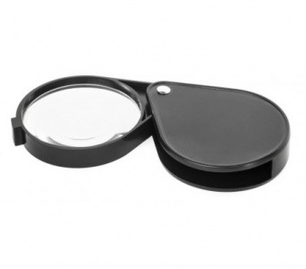 Sulankstomas kišeninis padidinimo stiklas plastikiniu korpusu.