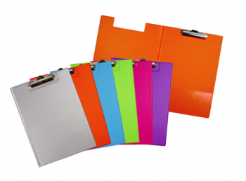 Padėklas dokumentams A5 formato, užverčiamas. Padengtas plevele. (PVC). Prispaudimo mechanizmas CLIPBOARD pritvirtintas viršuje horizontaliai.