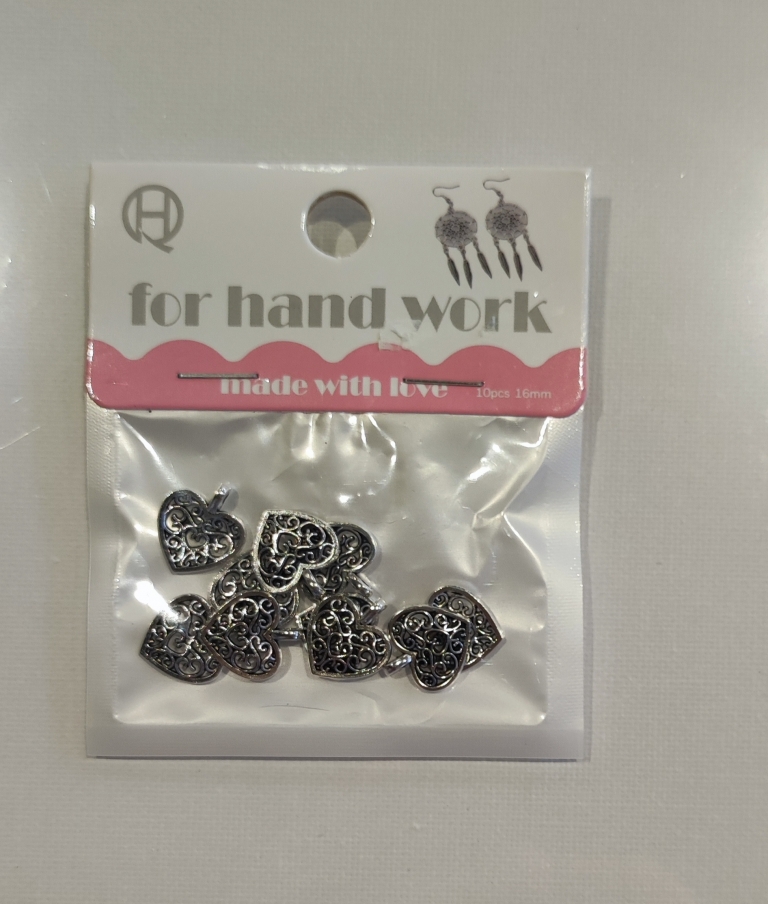 Pakabukai širdelės rankdarbiams 16mm. 10vnt.