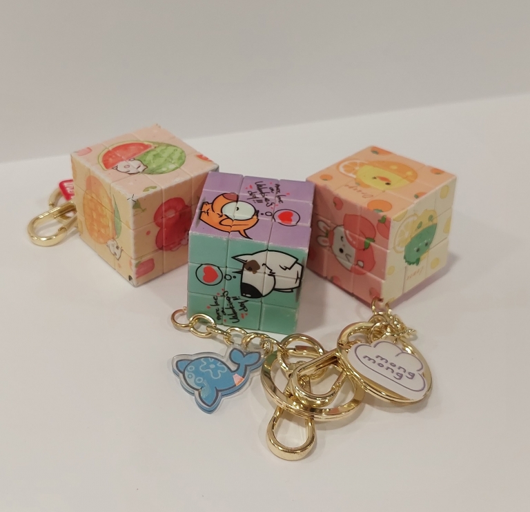 Pakabukas Rubiko kubas su įvairiais paveikslėliais