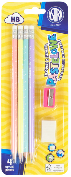 Paprastas pieštukas 4vnt su trintuku ir drožtuku ASTRA