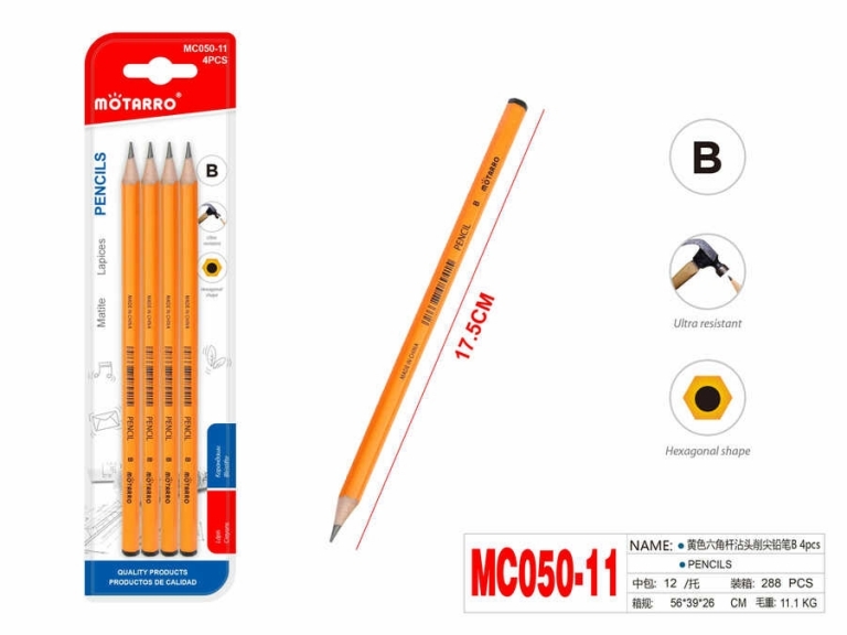 Paprastas pieštukas B 4vnt MOTARRO – tai puikus pasirinkimas tiek mokiniams, tiek suaugusiems, ieškantiems patikimo ir kokybiško rašymo įrankio. Šie pieštukai yra idealūs tiek piešimui, tiek rašymui, užtikrinantys sklandų ir tikslų rašymą.