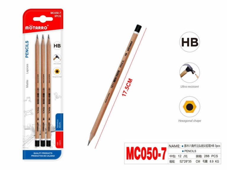Paprastas pieštukas HB 3vnt MOTARRO – tai puikus pasirinkimas tiek mokiniams, tiek profesionalams, ieškantiems patikimo ir kokybiško rašymo įrankio. Šie pieštukai pasižymi puikiomis rašymo savybėmis, kurios užtikrina sklandų ir malonų rašymą, o jų praktiškas dizainas leidžia juos naudoti kasdien.