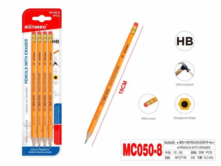 Paprastas pieštukas HB su trintuku 4vnt MOTARRO