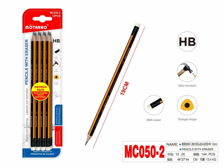 Paprastas pieštukas su trintuku HB 12vnt MOTARRO