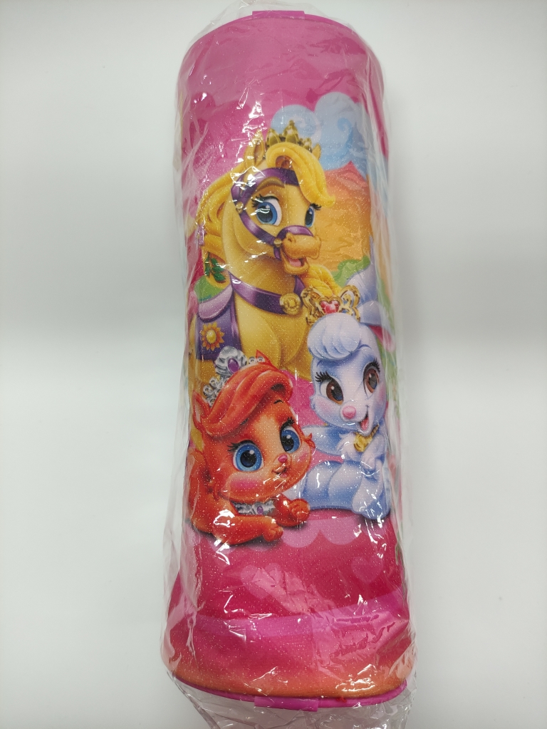 Penalas mergaitėms cilindro formos, su užtrauktuku, rožinis, su piešiniu