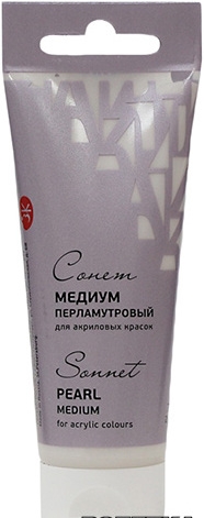 Perlamutrinis akrilinių dažų priedas "Sonet", 75 ml. Perlamutrinis mediumas pagamintas vandens akrilo dispersijos pagrindu. Galima naudoti ant įvairių paviršių - popieriaus, drobės, medžio, metelo, keramikos ir kt. Sumaišius su dažais, suteikia jiems perlamutrinį efektą, taip pat gali būti nauduojamas atskirai perlamutrinio efekto suteikimui įvairiems paviršiams. Tūris - 75 ml. Patogi plastikinė tūtelė su europakaba ir "flip-top" dangteliu, kuris pagreitina dailininko darbą ir puikiai išlaiko dažus jų saugojimo metu.