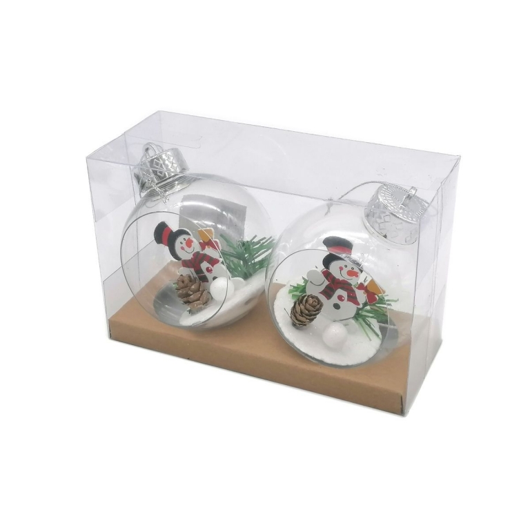 Permatomi burbulai ant eglutės su dekoracija viduje