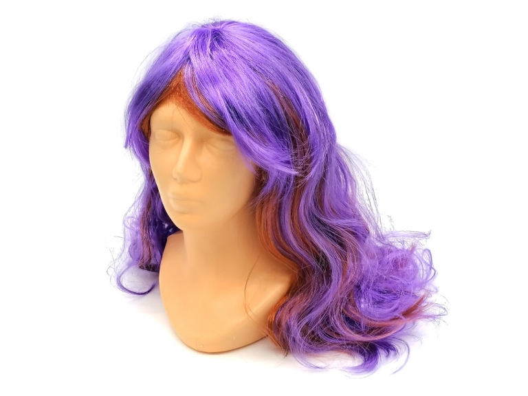 Perukas violetinis-rudas 15x50 cm. 53 cm.
