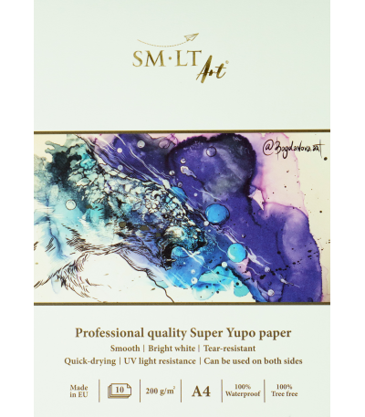 Švelnus, nepersigeriantis, atsparus vandeniui ir riebalams, greitai džiūstantis, UV spinduliams atsparus ypač baltas sintetinis popierius. Pagaminimui mediena nenaudojama. Ypač tinka markeriams, alkoholiniam rašalui ir kitoms piešimo technikoms. Galima naudoti abi vidinio popieriaus puses. Klijuotas, su kieta nugarėle.