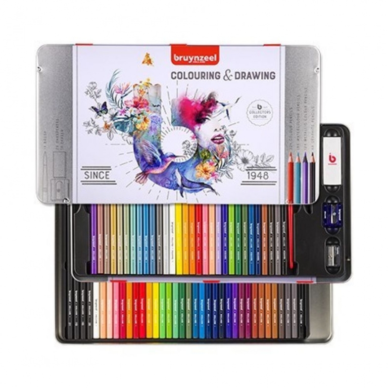 Dovaninis piešimo rinkinys Bruynzeel, 70 daiktų, metalinėje dėžutėje