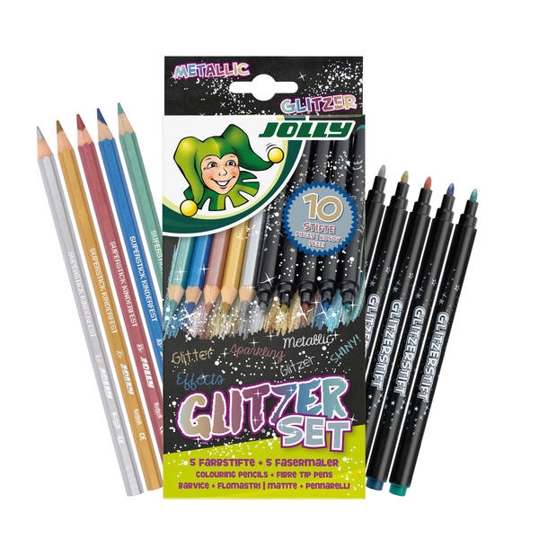 Piešimo rinkinys GLITZER METALLIC, Jolly, 5 sp. pieštukai + 5 sp. flomasteriai