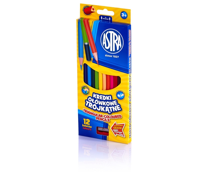 Pieštukai spalvoti trikampiai 12 spalvų ASTRA