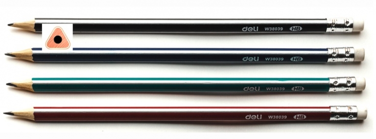 Pieštukas HB trikampis su trintuku, DELI