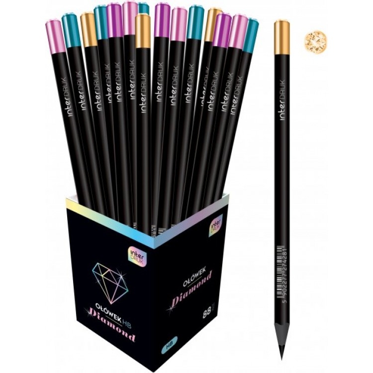 Pieštukas INTERDRUK Diamond Pastel HB, juodas korpusas dekor.kristalu
