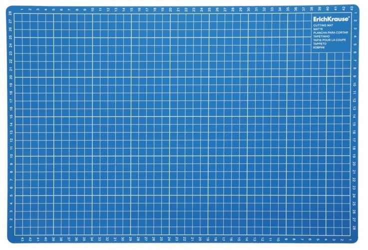 Universalus pjovimo kilimėlis. Naudojamas skrebinimui ir kitiems rankdarbiams. Iš vienos pusės paviršius suskirstytas kvadratiniais centimetrais (28x43 cm).
