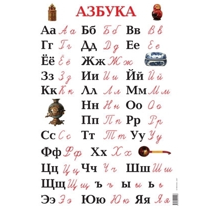Plakatas skirtas ikimokyklinio amžiaus vaikams, besimokantiems rusų kalbos ir norintiems išmokti abėcėlę.
