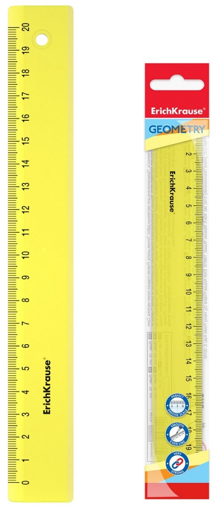Plastikinė liniuotė NEON, ErichKrause, 20cm ilgio, neoninė geltona sp