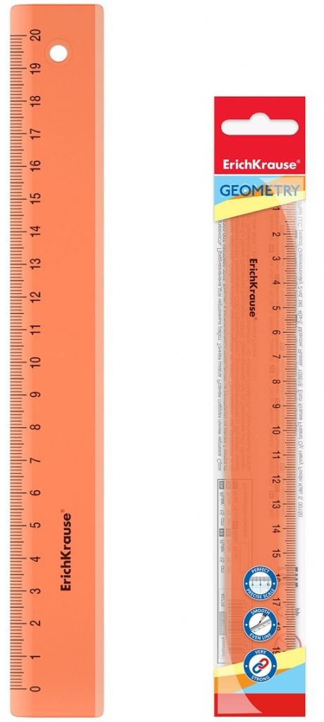 Plastikinė liniuotė NEON, ErichKrause, 20cm ilgio, neoninė oranžinė sp.