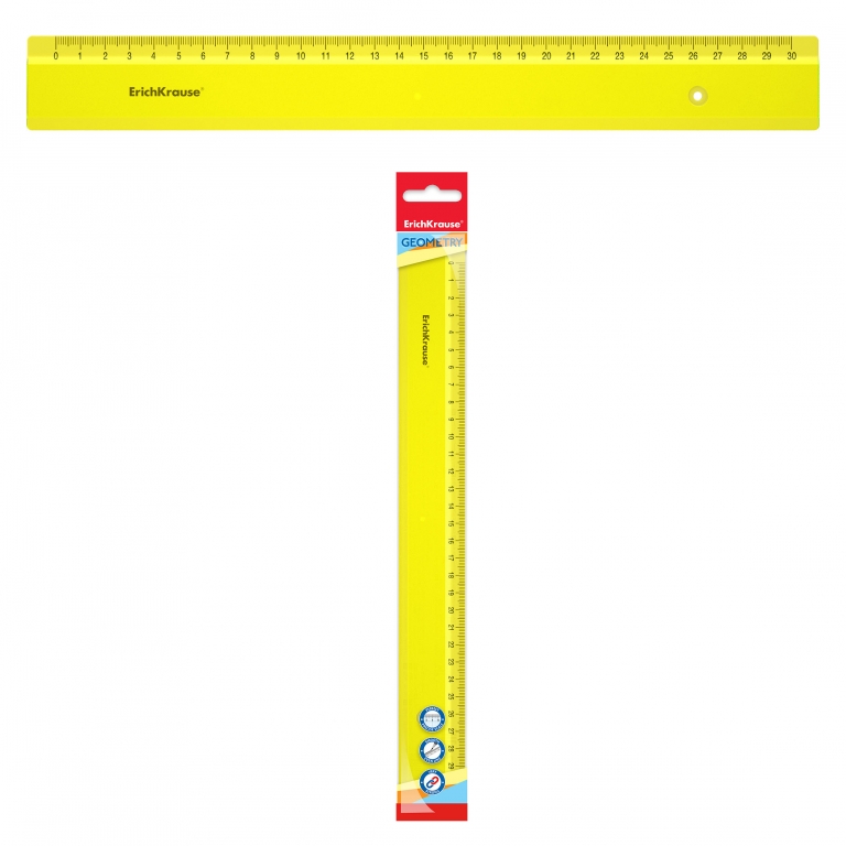 Plastikinė liniuotė NEON, ErichKrause – 30 cm ilgio, neoninė geltona