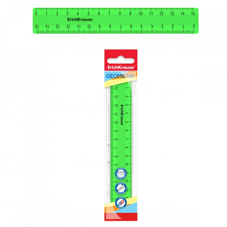 Plastikinė liniuotė NEON SOLID, ErichKrause, 15cm ilgio, neoninė žalia sp