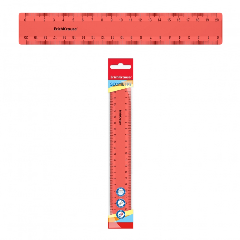Plastikinė liniuotė NEON SOLID, ErichKrause, 20cm ilgio, neoninė oranžinė sp.