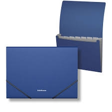 Plastikinis dėklas su 6 skyriais A4, su guma, mėlynos spalvos, ErichKrause