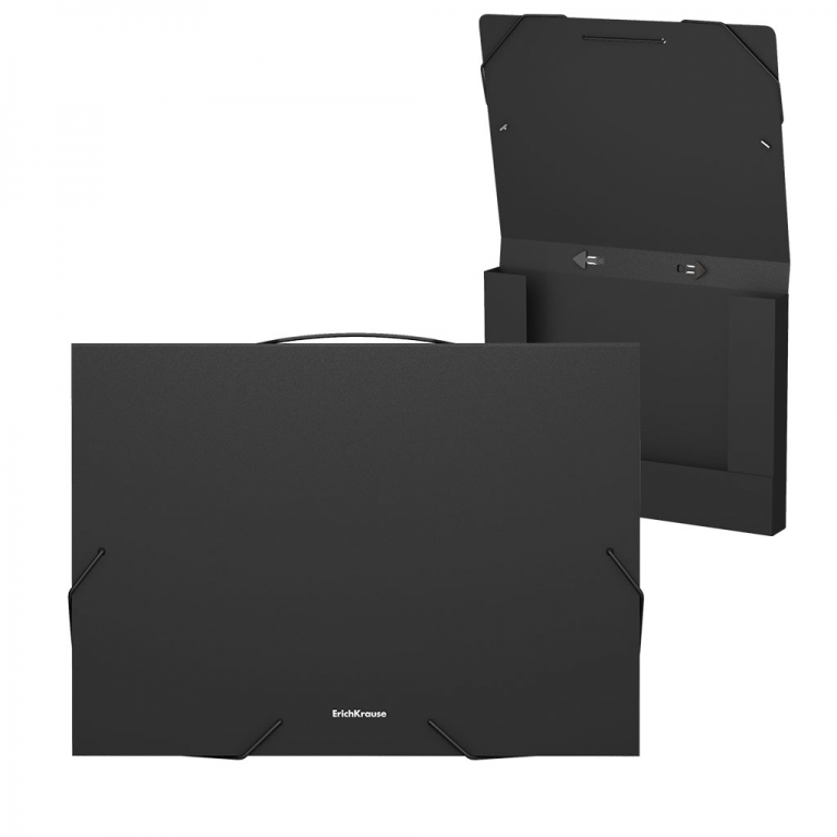 Plastikinis dėklas su guma CLASSIC, A4, 30mm, su rankena, juodos spalvos