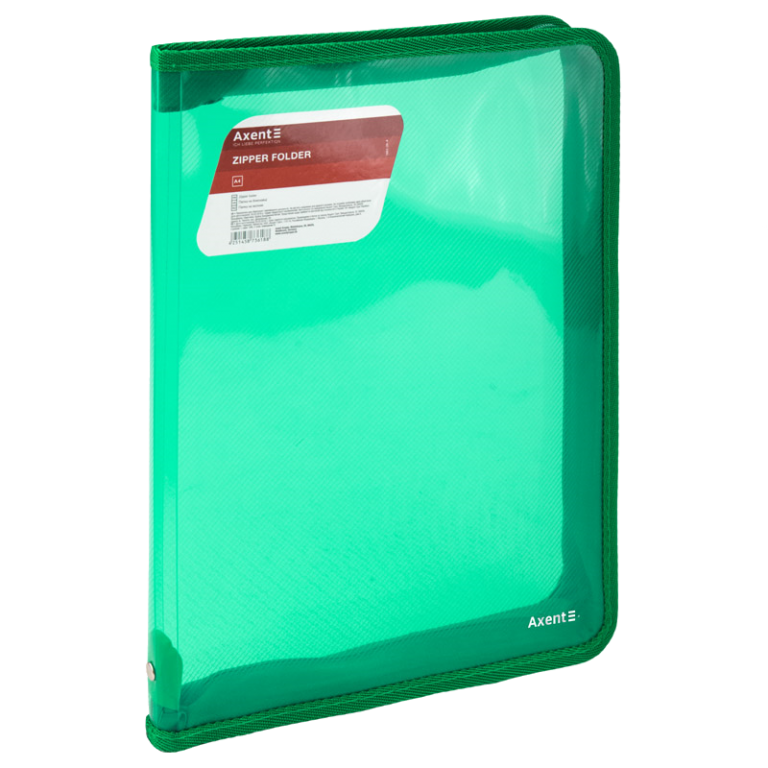 Plastikinis dėklas su užtrauktuku AXENT, A4, 550mkr, žalios sp.