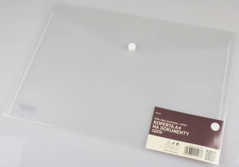 Plastikinis vokas su spaustuku A4, baltos spalvos, Grand