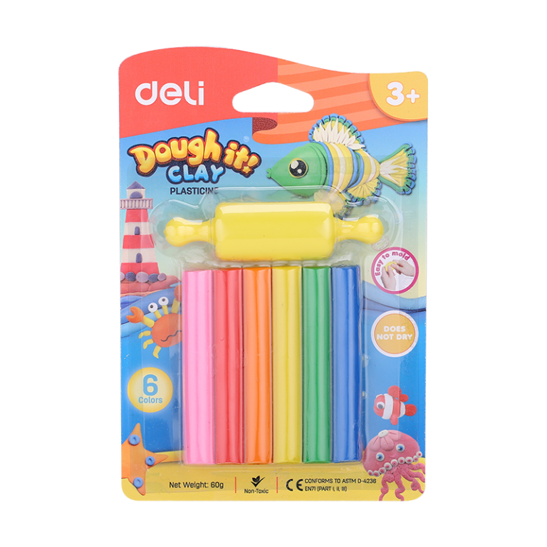 Plastilinas 6 spalvų 60g. +volelis Deli