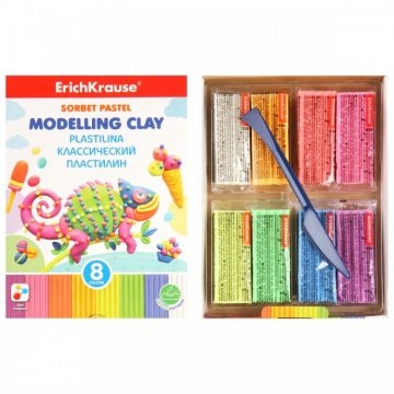 Plastilinas 8 pastelinių spalvų ErichKrause, 144g, EK54035