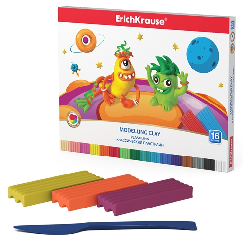 Plastilinas, COSMIC MONSTERS, ErichKrause, 16 spalvų po 18g, su peiliuku, su Aloe Vera