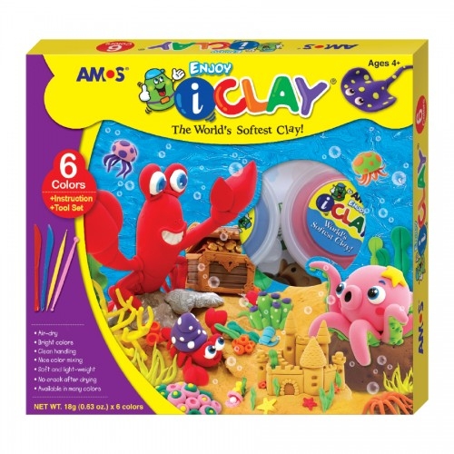 Plastilinas lengvas kietėjantis ore AMOS, 6 sp. po 18 gr.