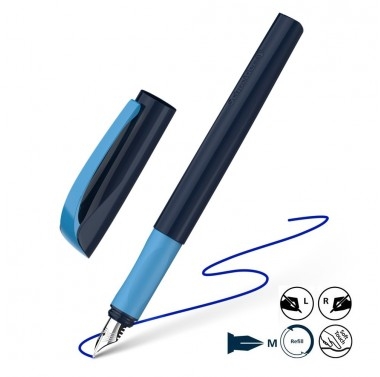 Plunksnakotis su ergonomiška gumine laikymo zona, modernus dizainas. M dydžio sustiprinto plieno plunksna. Standartinės rašalo kasetės, mėlynos spalvos, trinamos. Tvirta metalinė įsegėlė. Puikiai tinka dešiniarankiams ir kairiarankiams.