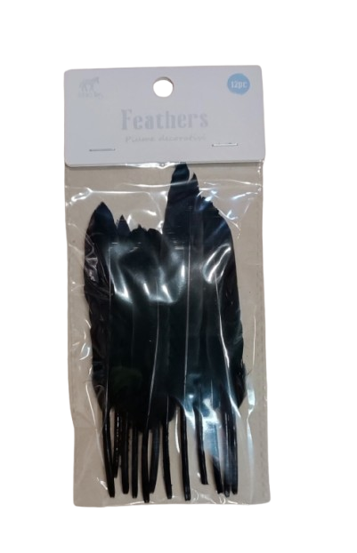 Plunksnos dekoratyvinės juodos 12 vnt 14cm