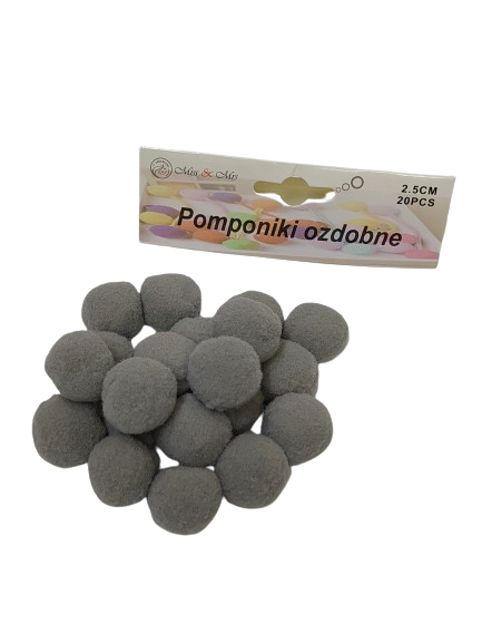 Pomponai pilkos spalvos 2.5cm 20vnt