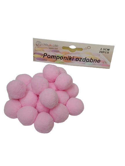 Pomponai ružavos spalvos 2.5cm 20vnt