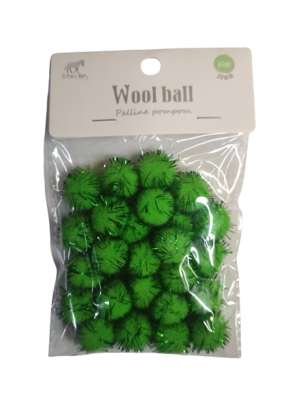 Pomponai žalios sp.su blizgučiais 2.0cm 25 vnt