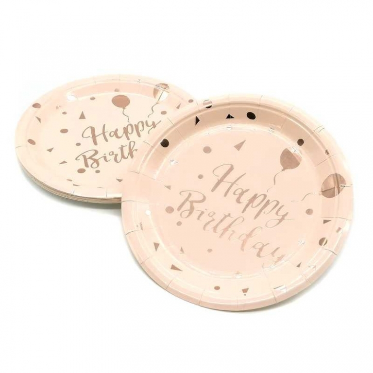 Popierinės lėkštutės "Happy Birthday", smėlio spl., 10vnt., 18cm