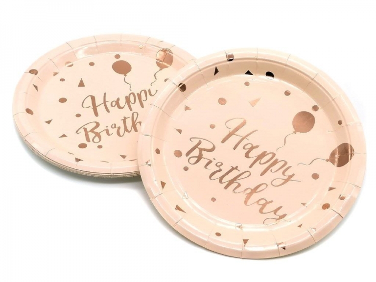 - Stilingas dizainas: Lėkštutės su "Happy Birthday" užrašu ir smėlio spalvos atspalviu puikiai derės prie bet kurios šventinės temos.