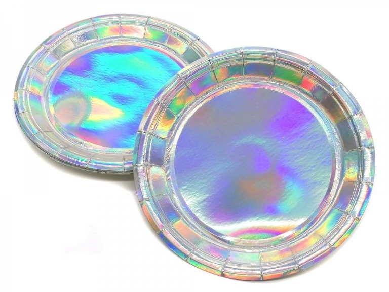 Popierinės lėkštutės, sidabrinės su atspalviu, 10vnt., 18 cm.