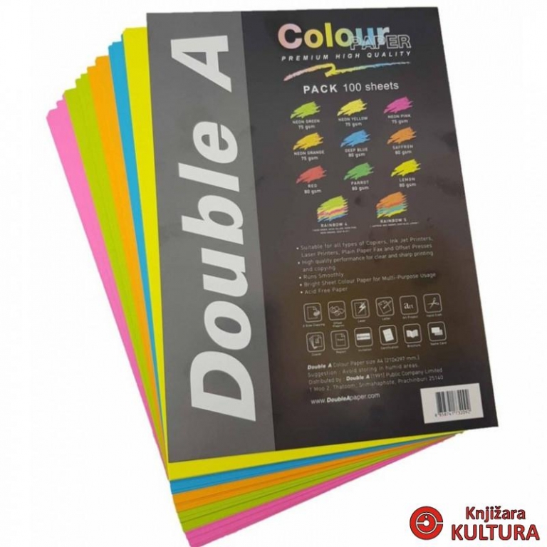 Popierius spalvotas A4 75gsm.,100 lapų, 5 neoninės spalvos