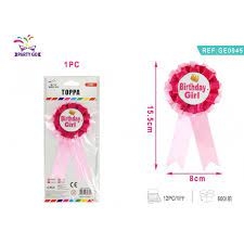 Prizinis medalis su smeigtuku "BIRTHDAY GIRL" 8 cm.